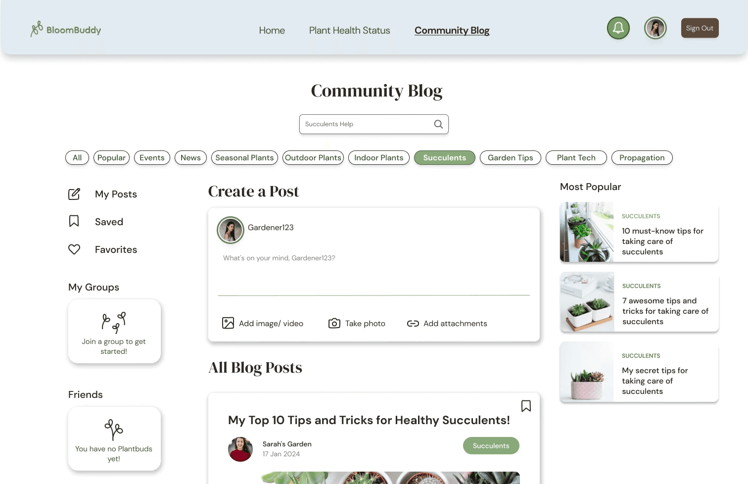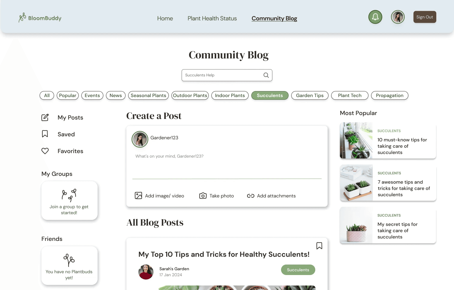 Integrated blog and discussion features to allow users to ask questions and learn from other plant owners.