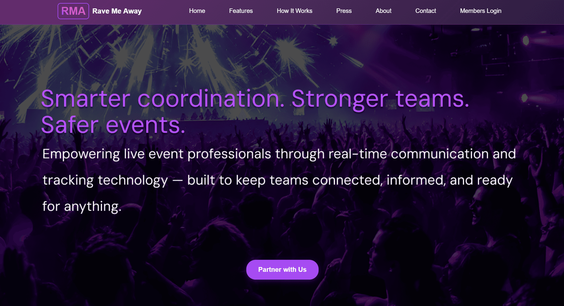 RaveMeAway’s existing website needed a visual refresh to improve first impressions and overall clarity. This project focused on redesigning the site to look more modern, engaging, and polished, while clearly presenting the brand and its core offering. The goal was to strengthen visual appeal and showcase strong website and UI design fundamentals.
